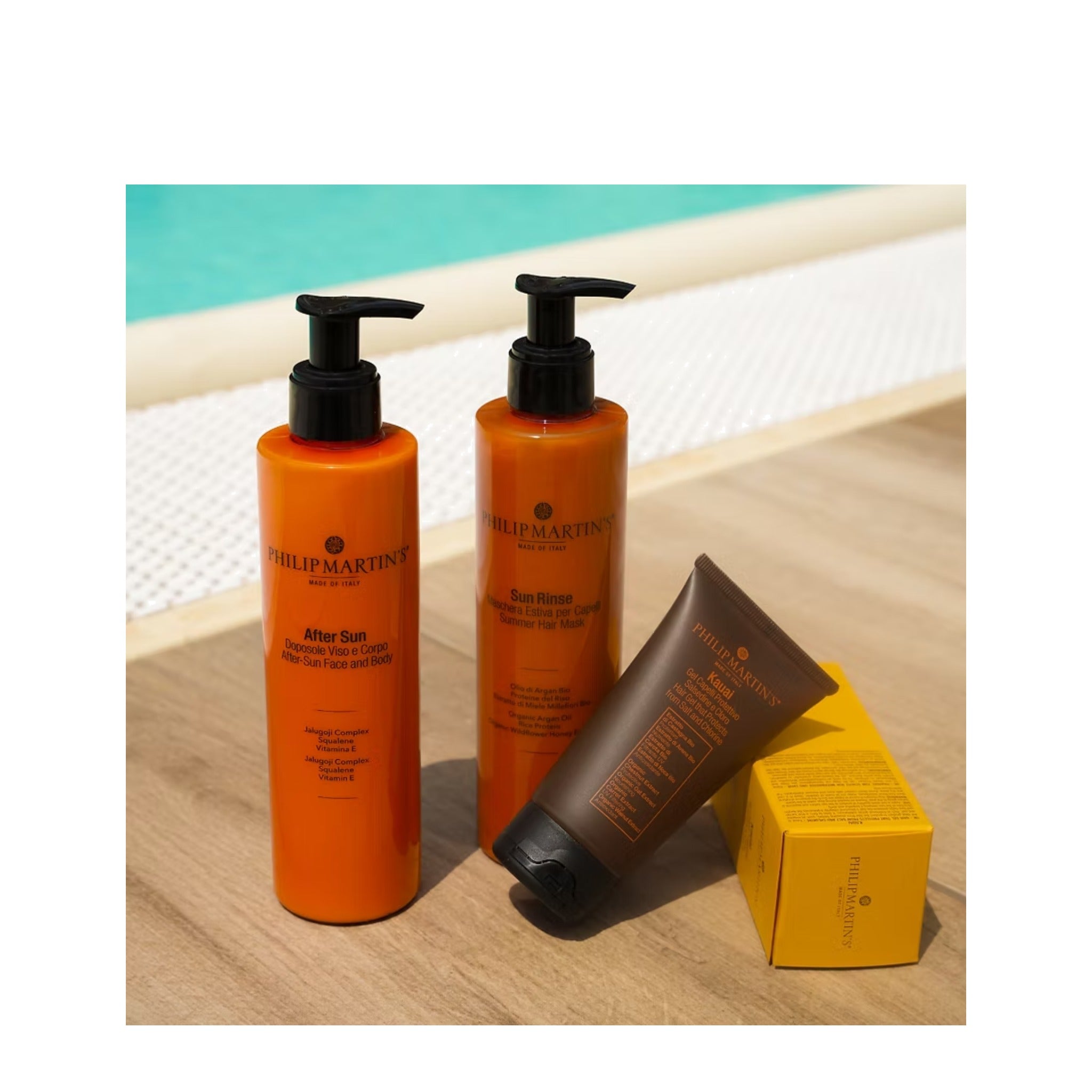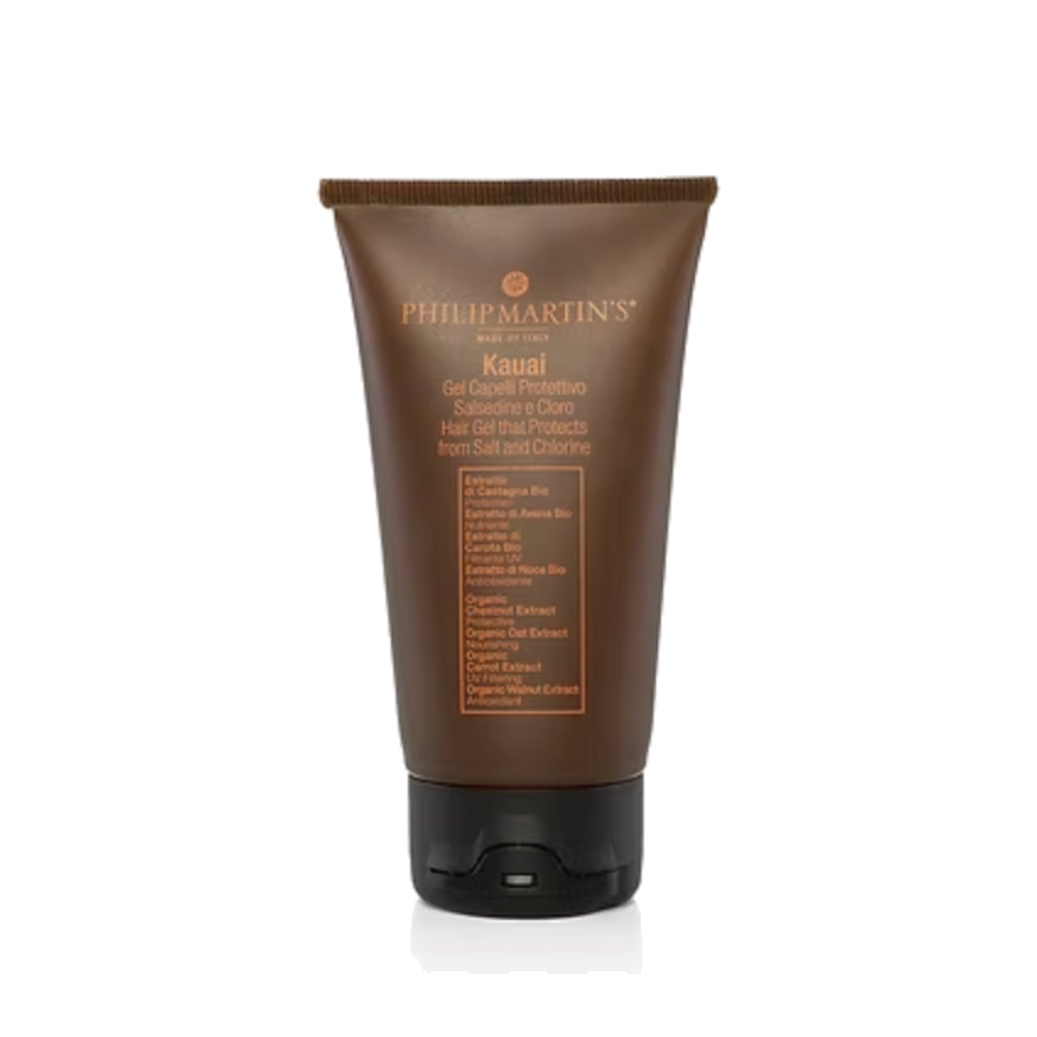 Ochranný gel na vlasy proti soli a chlóru. Bohatý na funkční aktivní látky má za cíl vytvořit skutečnou bariéru a pomáhá tak zachovat strukturální integritu vlasu.