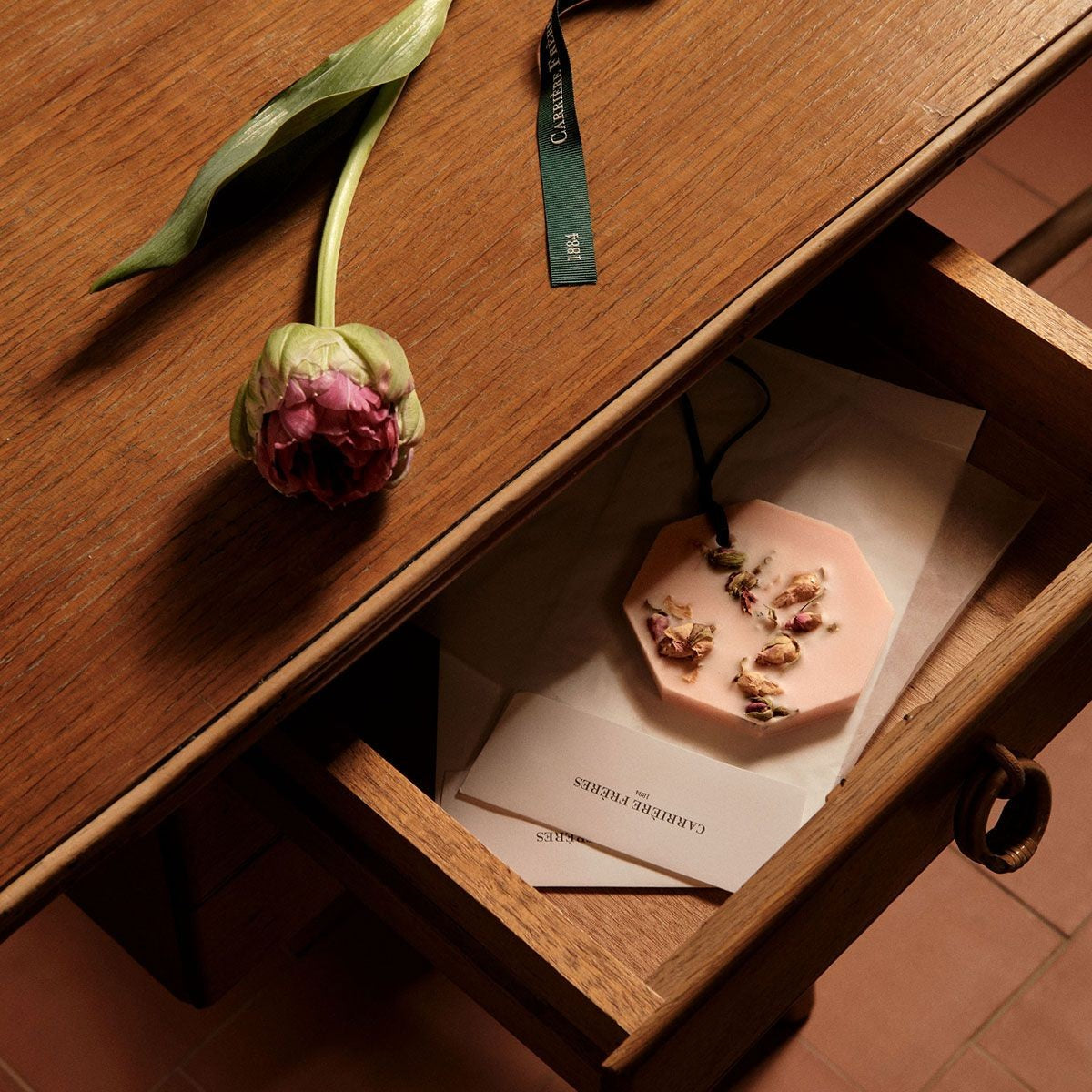 Nejstarší výrobce svíček na světě, Carrière Frères známý i jako Cire Trudon, přináší jedinečné, praktické vonné vosky k provonění malých prostor, jako šatní skříně nebo zásuvky. Vosky jsou jsou ručně vyráběny v rodinné manufaktruře ve Francii, za použití rostlinných výtažků pěstovaných ekologicky, udržitelným způsobem. Každý vosk je opatřen stuhou k zavěšení. Vybírejte ze tří vůní: damašská růže, atlaský cedr nebo levandule. Vosky jsou skvostně zabalenypo dvou kusech v hedvábném papíře a ilustrovaných krabičkách.